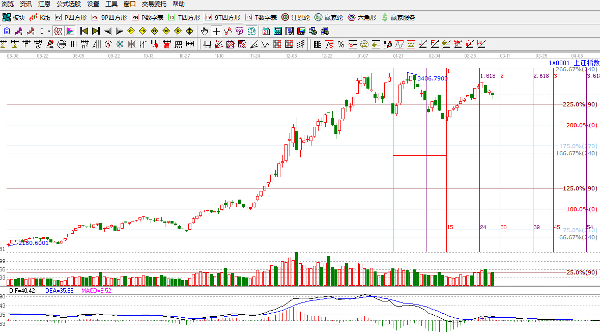 江恩理論系統(tǒng)黃金時間周期線提示:下一時間時間窗口3月9日。