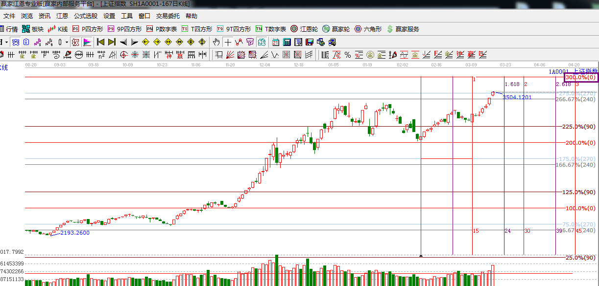江恩理論系統(tǒng)黃金時(shí)間周期線提示:16日時(shí)間窗口,滬指如期沖關(guān),短期下一時(shí)間窗口是 3月23日,3月30日。