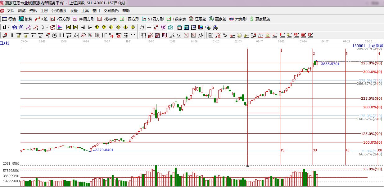 江恩看盤綜述:依據(jù)贏家江恩技術(shù)工具分析得出:周三滬指繼續(xù)強勢上行,收盤突破江恩90度3783點并站上3800點,成交量仍然維持在萬億水平,市場交投依舊活躍,但外軌線之下,順勢的同時并保留一份謹(jǐn)慎,操作上,繼續(xù)布局滯漲品種以及年報超預(yù)期的個股。具體可以關(guān)注大消費、環(huán)保、醫(yī)藥等年后漲幅相對落后的板塊,逢盤中急漲,要理性對待,切莫盲目追高。