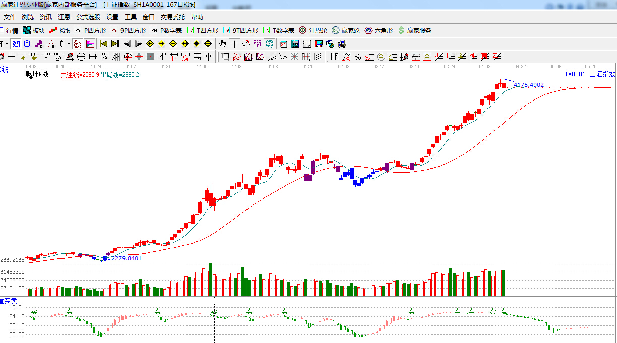 ☆依據(jù)贏家江恩理論系統(tǒng)能量買賣提示:與前期呈現(xiàn)小幅背離走勢(shì),并有“賣”字出現(xiàn),謹(jǐn)慎面對(duì)。