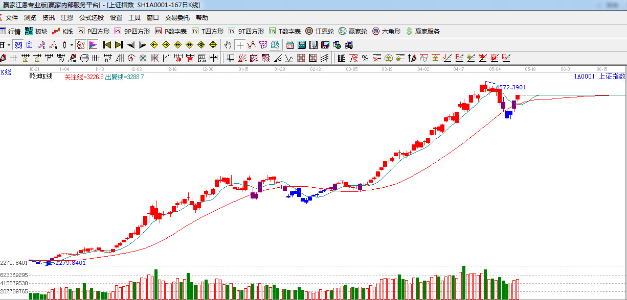★依據(jù)贏家江恩理論系統(tǒng)波段百分比提示:滬指如期在江恩135度4088點附近,止跌回升,突破180度4300點,180度轉(zhuǎn)換為支撐位置。