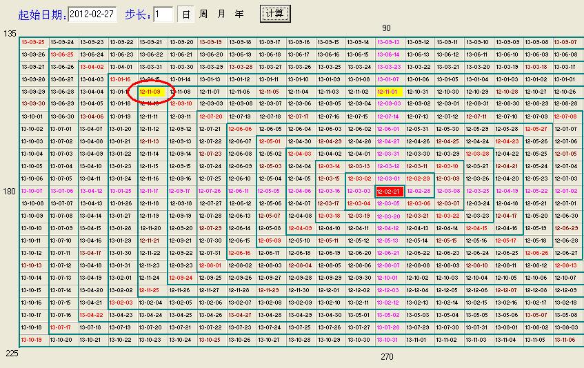 ☆依據(jù)贏家江恩系統(tǒng)工具——時間四方形提示:2012.2.27日作圖,12.11.09是其135度時間窗口。需關(guān)注這里變化。
