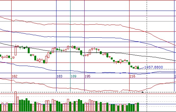 A股周一陰線再創(chuàng)新低,盤中的反抽力度同預(yù)期基本一致反抽到30分鐘外軌附近出現(xiàn)回落,短期盤中震理依然不建議參與,耐心等待K線跌到極反通道弱勢外軌線附近再操作,支撐1942-1947阻力1970;
