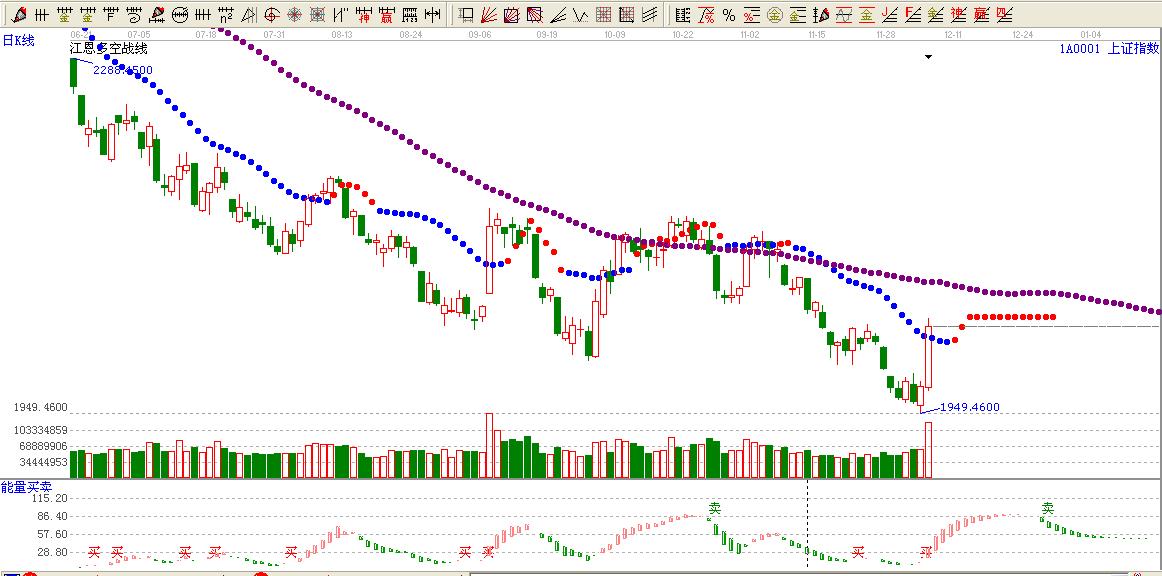 ★依據(jù)贏家江恩系統(tǒng)能量買賣提示:能量買賣多空交換區(qū)域,發(fā)出買的信號2日看多做多。
