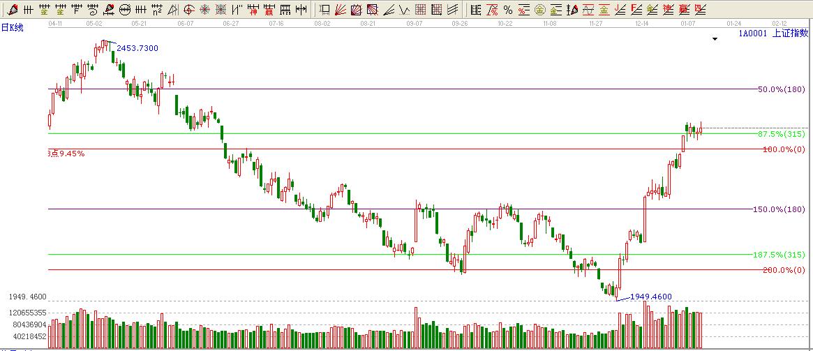 綜上所述:大盤短期波段百分比315度位置2270構(gòu)成短期強支撐。上方上軌壓力2318點。