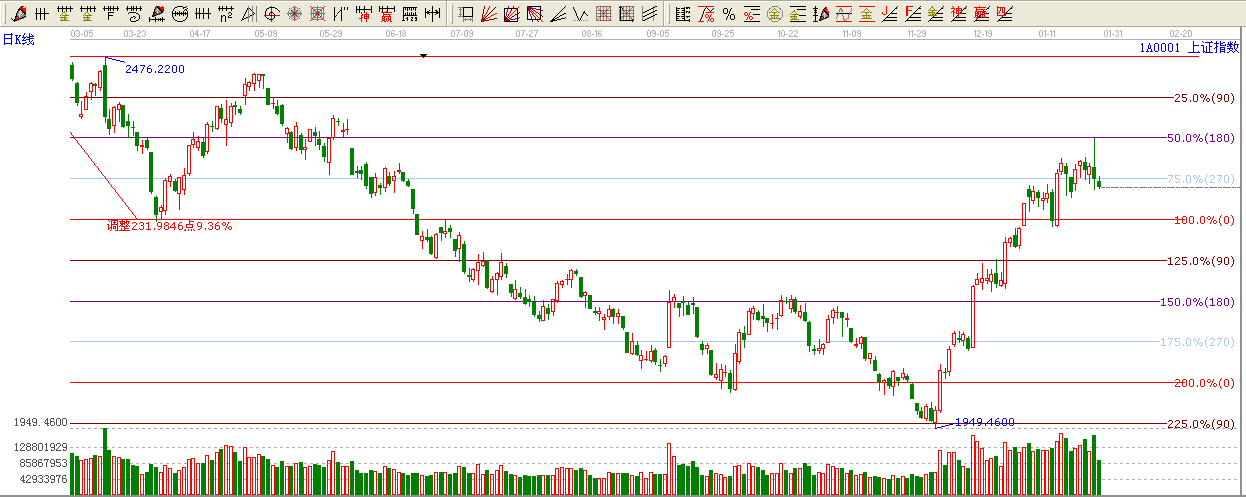 ☆依據(jù)贏家波段百分比伸線提示:大盤270度位置2302壓力,下方支撐0度位置2246點。