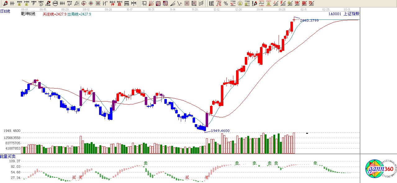 ★依據(jù)贏能量買賣提示:能量買賣多空臨界點,處于紅色區(qū)2.618位置2443點區(qū)間,黃金位置2.382不破看高一線至3唄位置2515點附近。