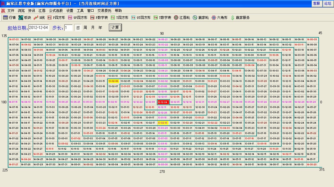 ☆ 依據(jù)贏家時間正方形提示:本周重要時間窗口在2月6日是其135度位置。注意時間窗口變化。