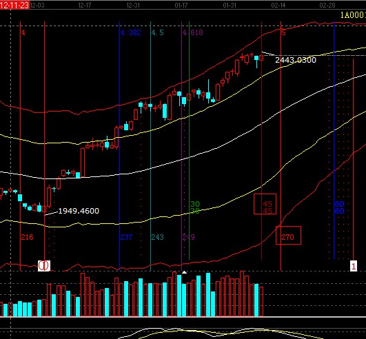 大盤自1949點已運行45個交易日,一舉突破站穩(wěn)生命線及強勢外軌線線,整體趨勢生命線不破做多觀點不變,操作可通過提升止損位保護收益或倉位上做高拋低吸降低成本,21號是本周時間窗口,短期支撐2425-2414,阻力2446-2460;