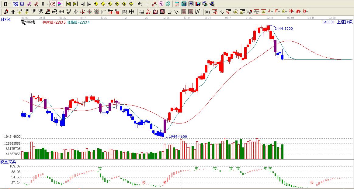 ☆依據(jù)贏家乾坤K線提示:大盤(pán)處于藍(lán)色區(qū)間,看空做空。