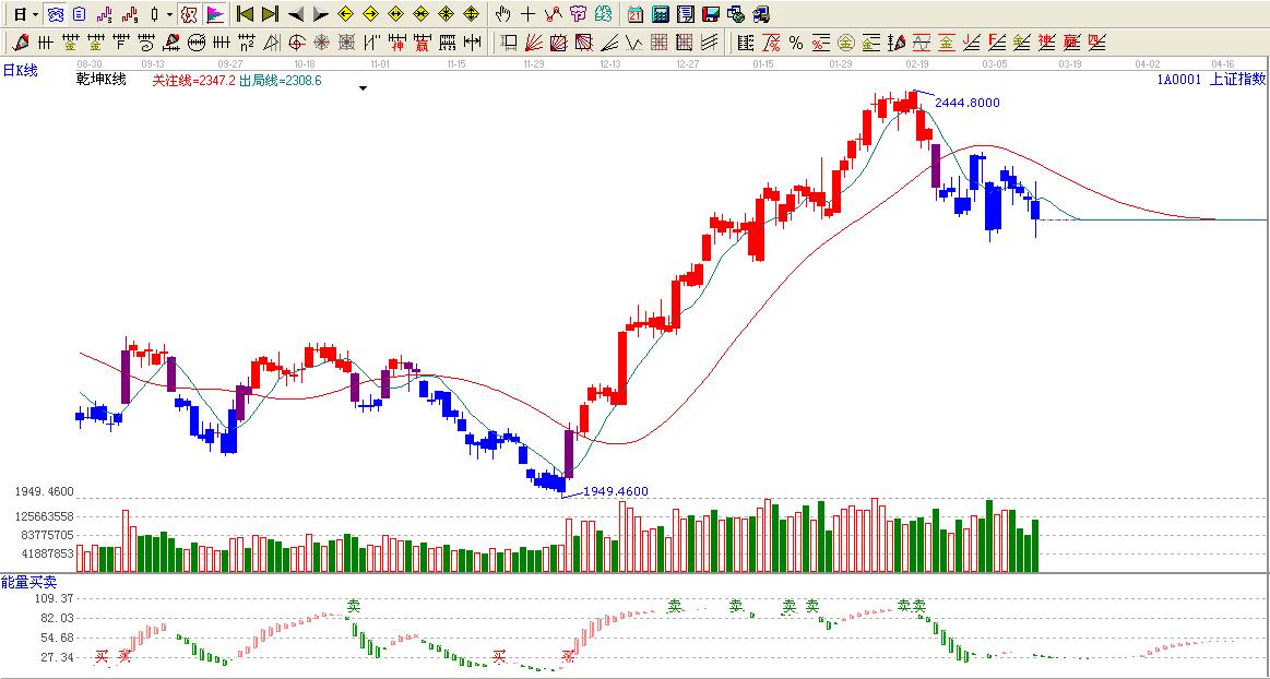 ☆依據(jù)贏家乾坤k提示:目前大盤運(yùn)行在藍(lán)色區(qū)域,出局線下方,看空做空。