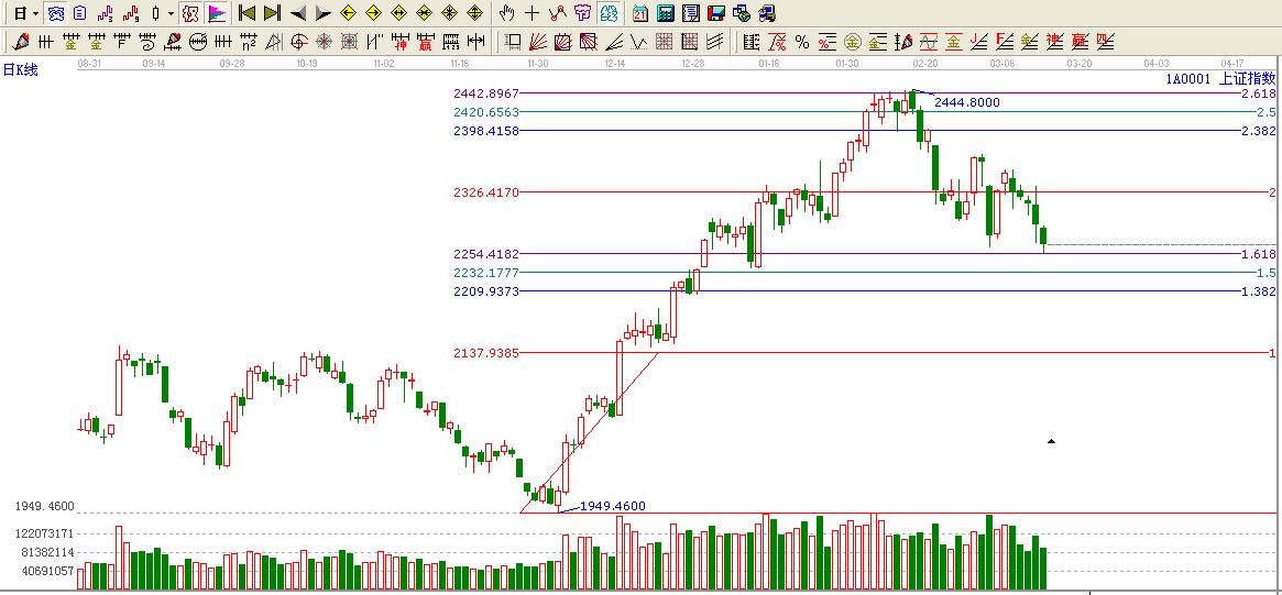 ★依據(jù)贏黃金價(jià)格延伸線提示:大盤處于黃金分割延伸1.618位置2252點(diǎn)這里不破看高一線至2倍位置2325點(diǎn)附近