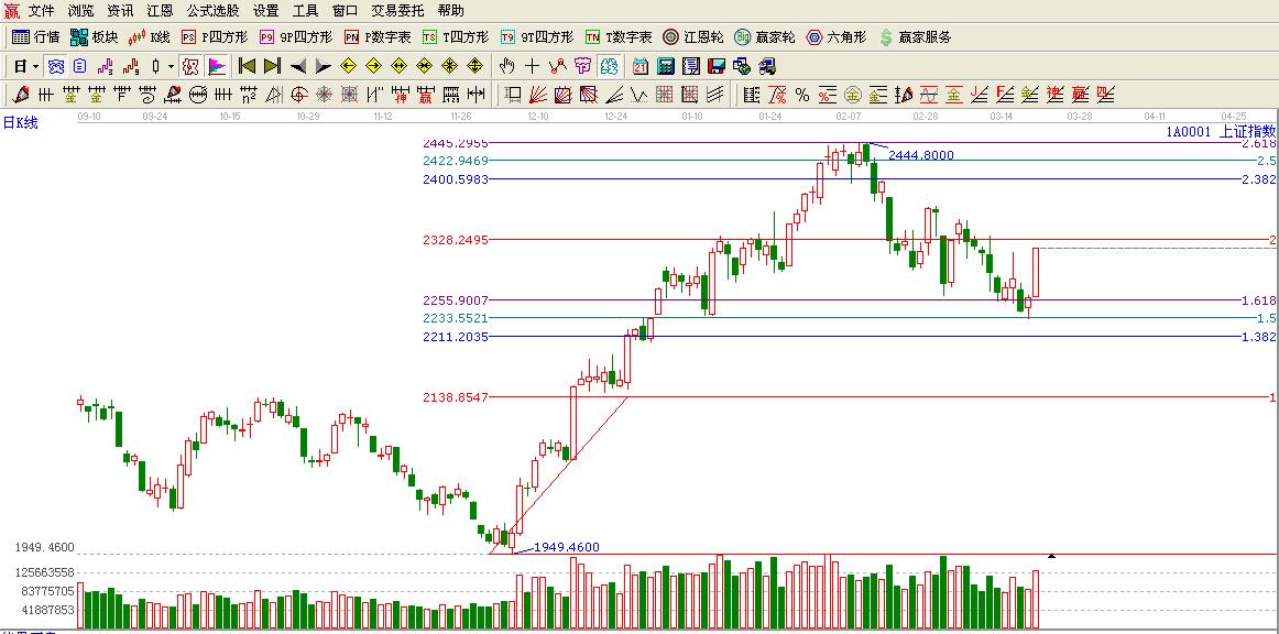 綜上所述:目前大盤出于黃金分割2倍位置2328附近下方,這里跟極反通道生命線構(gòu)成了雙重壓力位置。這里強攻后震蕩難免。注意極反通道生命線的能否站穩(wěn)。