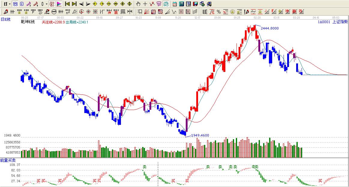 ☆依據(jù)贏家乾坤k線提示:大盤處于藍(lán)色區(qū)域內(nèi),看空。