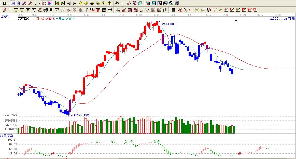 ☆依據(jù)贏家乾坤k線提示:大盤處于藍(lán)色區(qū)域內(nèi),趨勢(shì)依然看空為主。