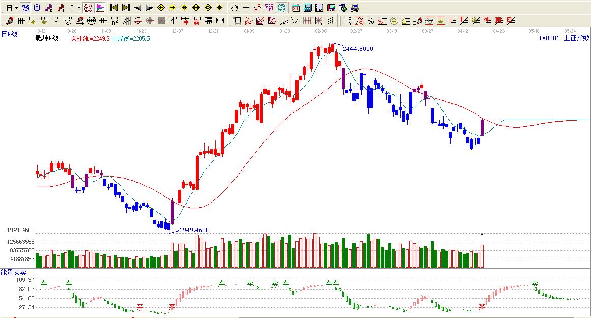 ☆依據(jù)贏家江恩系統(tǒng)極反通道提示:大盤日線依然處于極反通道生命線下方,短周期30分周期大盤運(yùn)行在極反通道藍(lán)色上軌位置2250短期壓力。