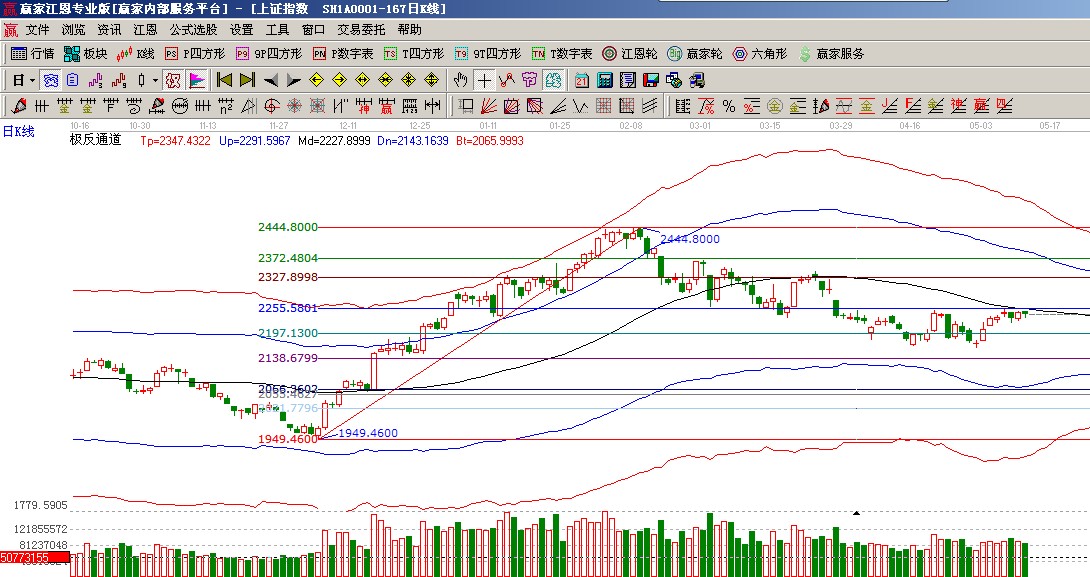 ☆依據(jù)贏家江恩系統(tǒng)極反通道提示:4天小陰小陽(yáng)運(yùn)行在生命線下,未有標(biāo)志性K線突破生命線前看空;