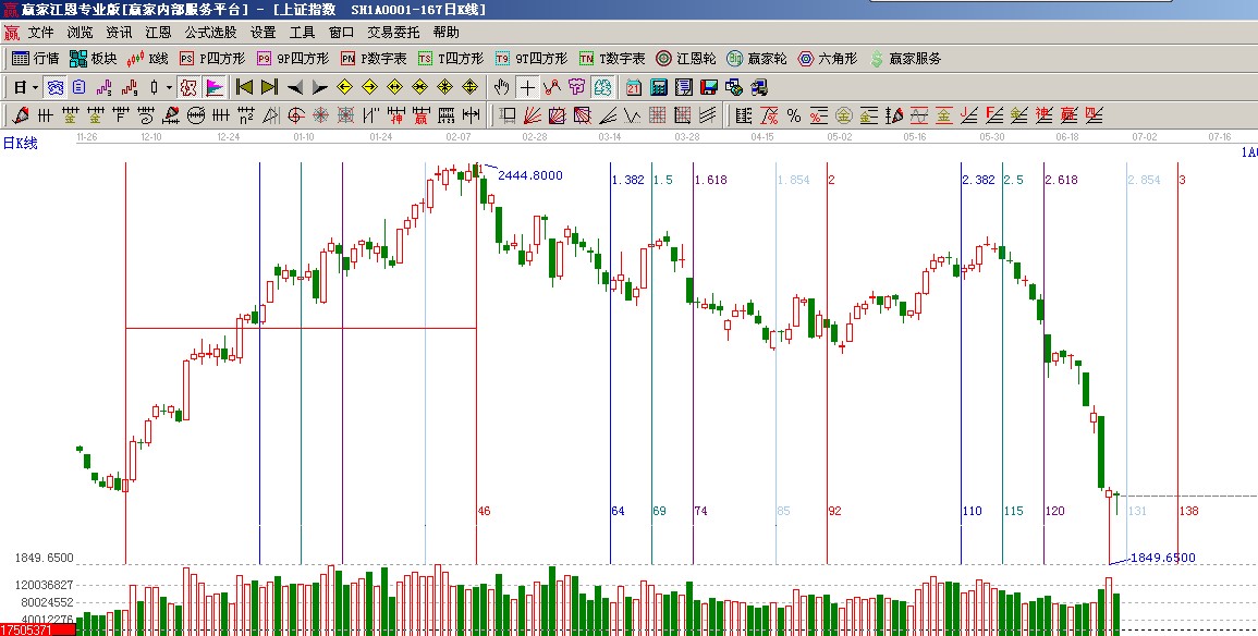 ☆依據(jù)贏家江恩系統(tǒng)極反通道提示:紅色外軌線是支撐位,依據(jù)規(guī)則站穩(wěn)一線看高一線,弱勢外軌線2000點是當(dāng)前阻力位;