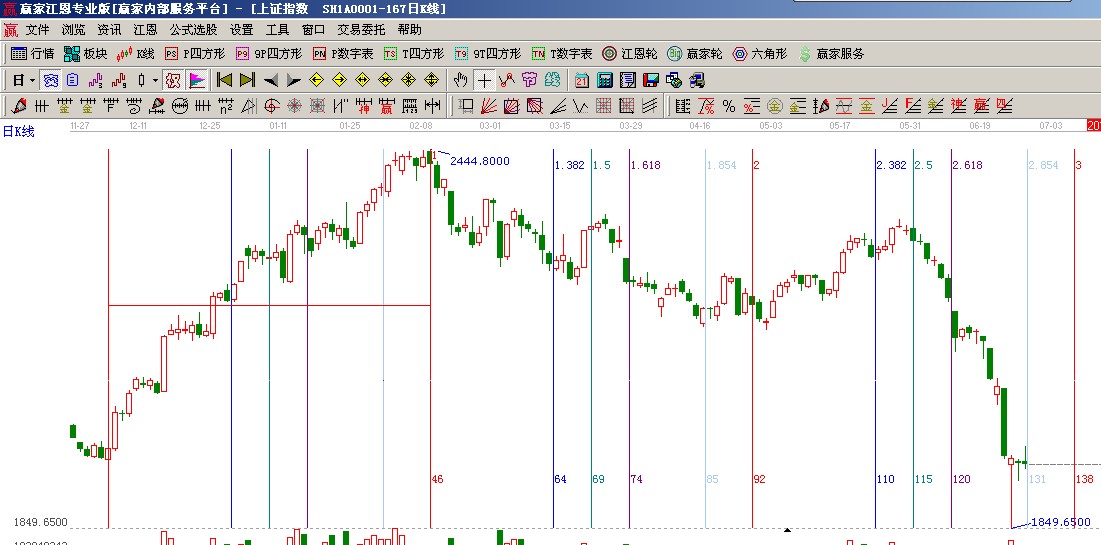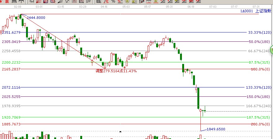 ★依據贏家江恩系統(tǒng)波段百分比延伸提示:自2478至2242做圖,支撐位是三分之一位置1925點,阻力位是零度位置2000點(2);