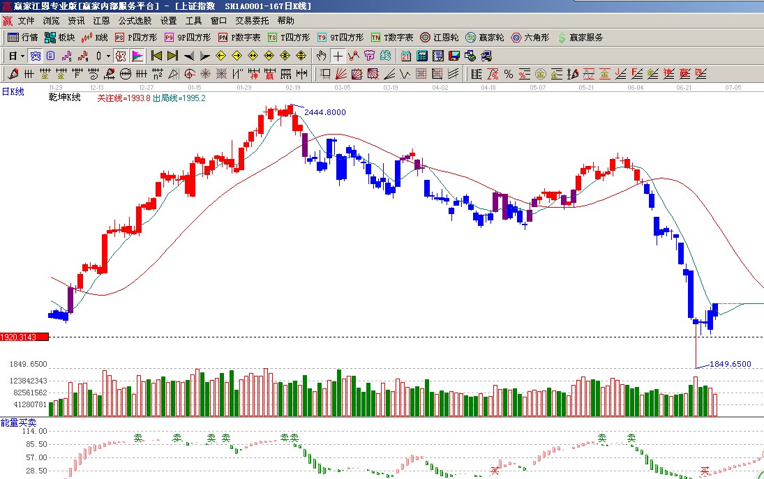 ☆依據(jù)贏家江恩系統(tǒng)乾坤K線提示: 出局線為當(dāng)前K線短期壓力,震蕩修復(fù)關(guān)注線隨后是大的方向選擇;(1);