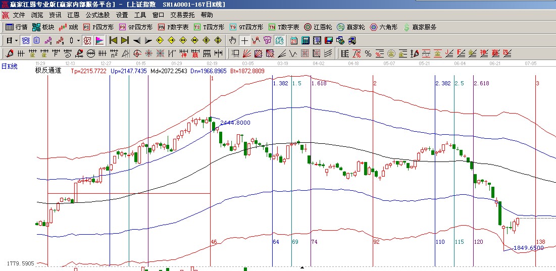 ★依據(jù)贏家江恩系統(tǒng)波段百分比延伸提示:自2478至2242做圖,240度支撐位是1979點(diǎn),阻力位是零度位置2026點(diǎn)(2);