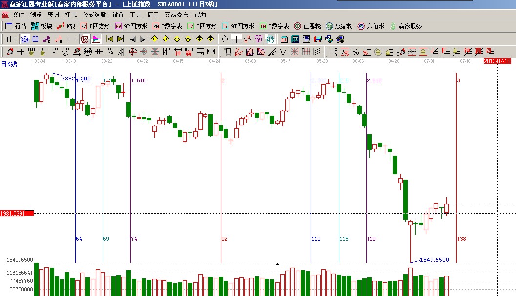 ★依據(jù)贏家江恩系統(tǒng)波段百分比延伸提示:自2478至2242做圖,早盤兩次下探240度支撐位是1979點隨后拉起,阻力位是零度位置2025點(2);