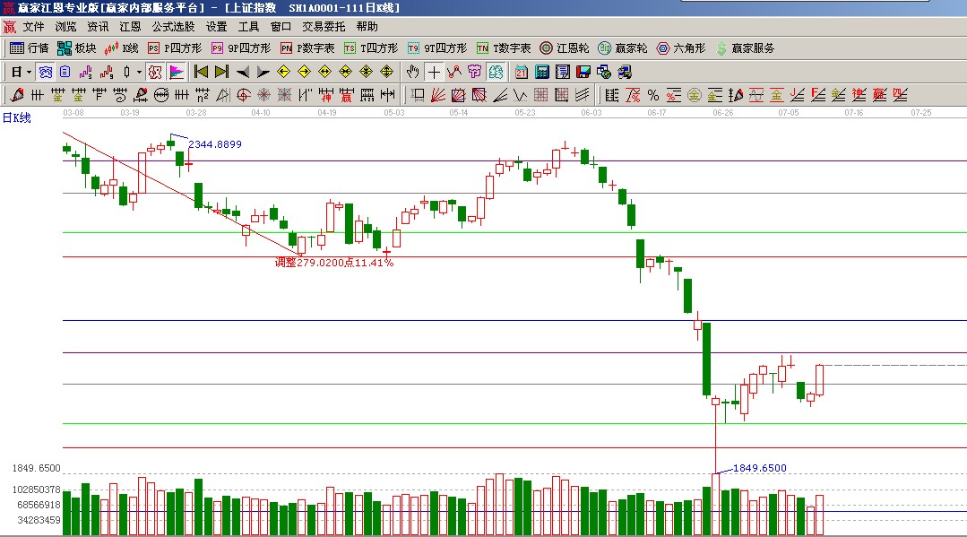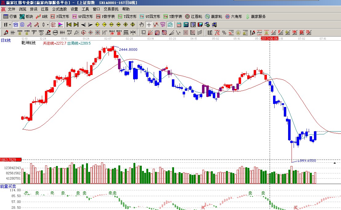☆依據(jù)贏家江恩系統(tǒng)極反通道提示:放量突破弱勢(shì)外軌線,震蕩不破1985短周期下一目標(biāo)為2080生命線附近;