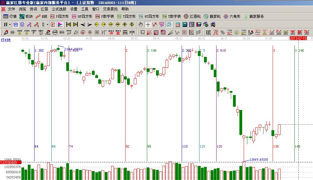 ★依據(jù)贏家江恩系統(tǒng)黃金時(shí)間周期線提示:日線級(jí)別的時(shí)間窗是中旬17號(hào)左右;