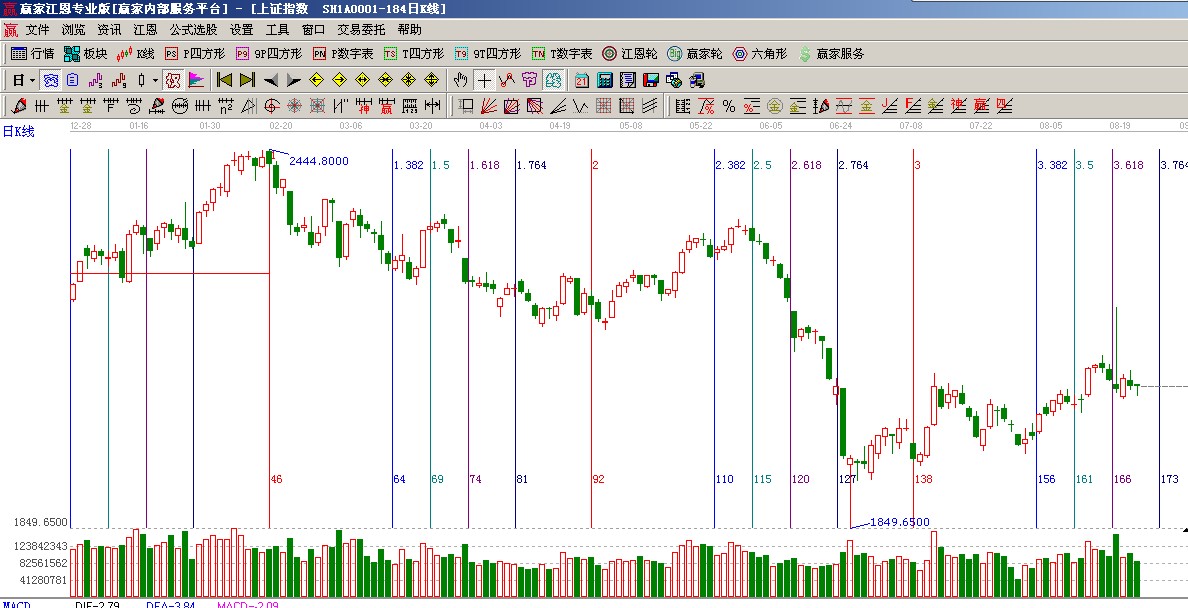 ★依據(jù)贏家江恩系統(tǒng)黃金時(shí)間周期線提示:本周日線級(jí)別的時(shí)間窗口在23或26號(hào);