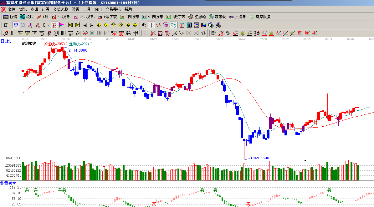 ★依據(jù)贏家江恩系統(tǒng)能量買賣提示:多頭當(dāng)前占據(jù)優(yōu)勢,主現(xiàn)紅色柱子;(1)