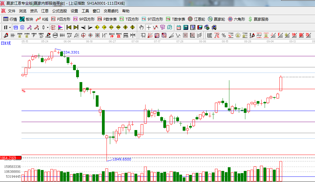 咨詢:13333833889指數(shù)如期延續(xù)上攻局勢(shì),并且放量突破極反通道強(qiáng)勢(shì)外軌線,根據(jù)市場(chǎng)運(yùn)行規(guī)律量能跟隨不上將以橫盤(pán)進(jìn)行資金板塊轉(zhuǎn)移,從整體運(yùn)行動(dòng)能看指數(shù)還將保持震蕩上攻,因此策略上以持股為主,尋找有事件推動(dòng)或強(qiáng)勢(shì)回落的個(gè)股進(jìn)入布局;盤(pán)面板塊方面在優(yōu)先股及8月數(shù)據(jù)利好帶動(dòng)下,權(quán)重股銀行、券商、證券強(qiáng)勢(shì)拉升帶動(dòng)指數(shù)突破2200,題材股票退潮,但這種現(xiàn)像只是資金一種運(yùn)行方式,指數(shù)穩(wěn)定后仍將是這類個(gè)股表現(xiàn);