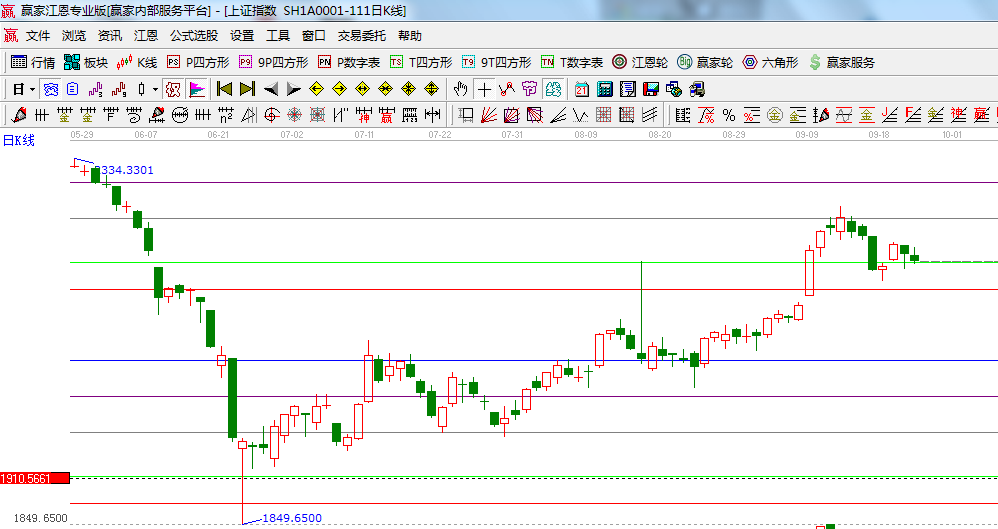 ★依據(jù)贏家江恩系統(tǒng)乾坤K線提示: 短期出局線壓制,關(guān)注線上移,兩線粘合是市場(chǎng)有望轉(zhuǎn)入震蕩;