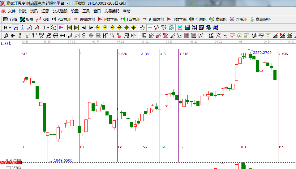 咨詢:13333833889研究歷史預(yù)測(cè)未來是江恩理論代名詞,贏家江恩系統(tǒng)則是依據(jù)江恩理論的核心理論自然規(guī)律而研發(fā),一直以來直觀的通過工具理性的分析判斷指數(shù)、個(gè)股的走勢(shì),近期指數(shù)的走勢(shì)一步步的在安著分析預(yù)判的運(yùn)行,如昨天分析所談到60分鐘生命線2195的失守將展開日線的正式調(diào)整,市場(chǎng)今天破位后出現(xiàn)快速下跌,這種格局要持續(xù)到節(jié)后的一周左右的時(shí)間里才會(huì)有所緩解,因此操作上放慢節(jié)奏,權(quán)重股的調(diào)整將指數(shù)帶動(dòng)下來,為后期上攻拉空間,虧損過多的個(gè)股不需要出局,做出減倉(cāng)尋找機(jī)會(huì)補(bǔ)倉(cāng);假期前還有兩個(gè)交易日,假期效應(yīng)會(huì)再現(xiàn);