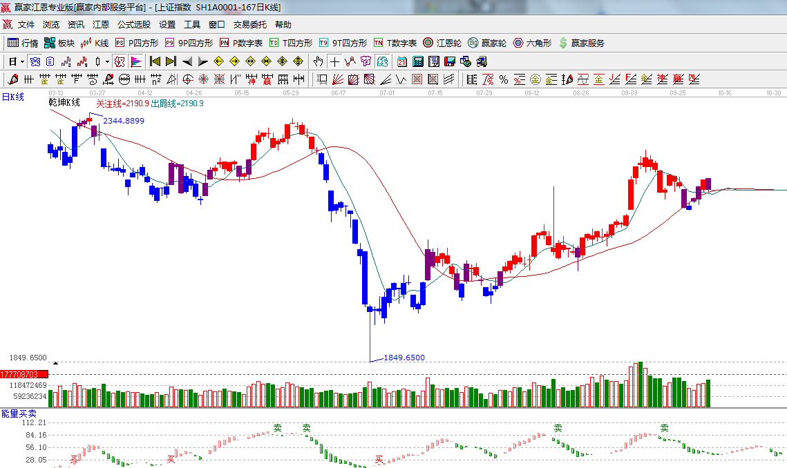 ☆依據(jù)贏家江恩系統(tǒng)能量買賣提示:多空轉(zhuǎn)換區(qū),等待紅色柱;