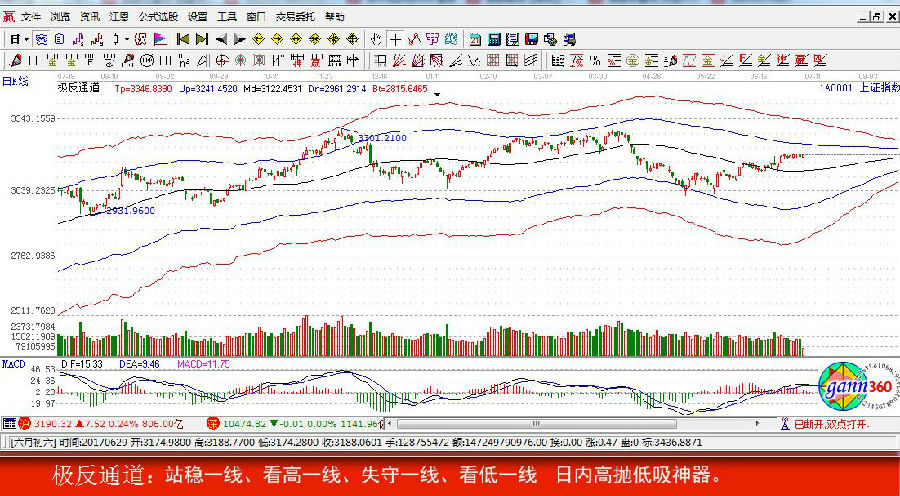 【贏家江恩點評:極反通道工具可幫助用戶解決大盤或個股趨勢判斷、價格買賣點,在日內(nèi)差價高拋低吸方面更能提示其優(yōu)勢?!?/strong>