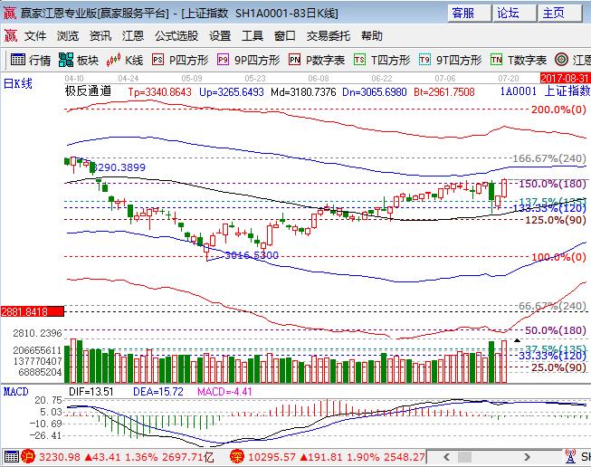 咨詢:13333833889大盤周三低開高走放量大漲1.36%,滬指和中小板收復前天的失地,創(chuàng)業(yè)板表現(xiàn)不佳。板塊方面,有色、煤炭和鋼鐵等板塊領漲,銀行、石油漲幅墊后;題材方面,漲價類資源和中報預增為盤中亮點,蘋果概念受港股大漲刺激表現(xiàn)不錯,其它中小板未跟上節(jié)奏,9成個股上漲成交量放大。技術方面,滬指出其不意的再創(chuàng)新高,短周期收復極反通道生命線,同時外軌線均有上移,江恩百分比180度3222點成為盤中短期支撐,日線外軌線3260為近期阻力,未布局滬深300標地的投資者,依然要擇機適當參與部分籌碼,下周初煤炭調整中未布局的仍可以參與,倉位保持在5成,3222、3208為日內支撐,3240、3257為日內阻力,僅供參考,不構成任何投資建議。