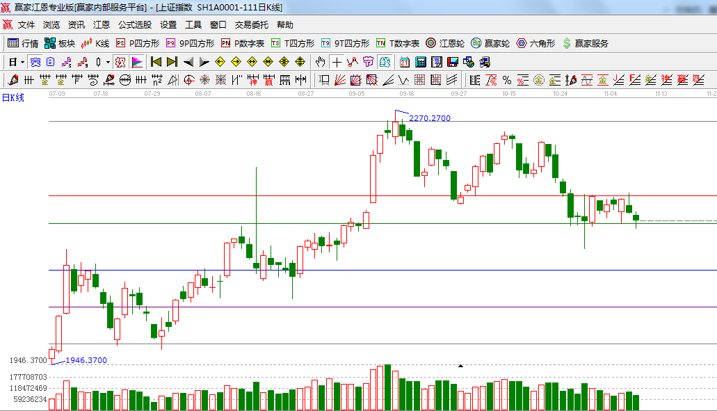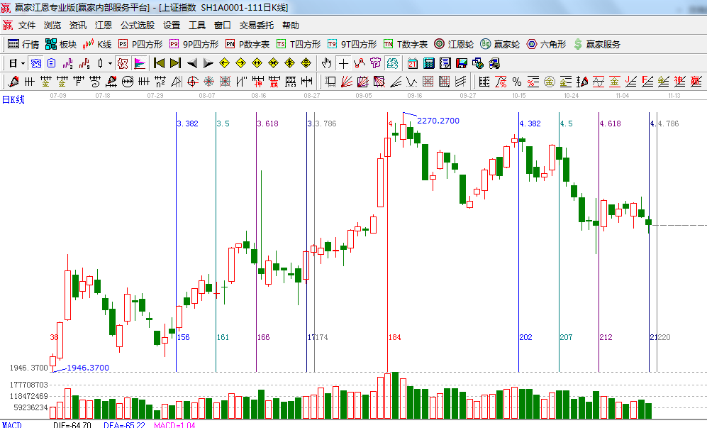 ★依據(jù)贏家江恩系統(tǒng)波段百分比延伸提示:江恩理論百分比45度位置是2125點(diǎn),江恩百分比0度是2160;