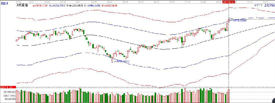 周一,滬指高開高走,強勢突破極反通道藍色上軌線,打開了新的上行空間,盤中最高沖擊45度線3380點附近,量能同比放大,但在沖高過程中五大行和一批行業(yè)龍頭股有出貨的跡象,所以,短期指數(shù)上行中或仍有反復(fù),短期不宜盲目追高。操作上,輕指數(shù)、重個股。不追高的前提下,低吸低位放量,具有業(yè)績支撐的良好標的。