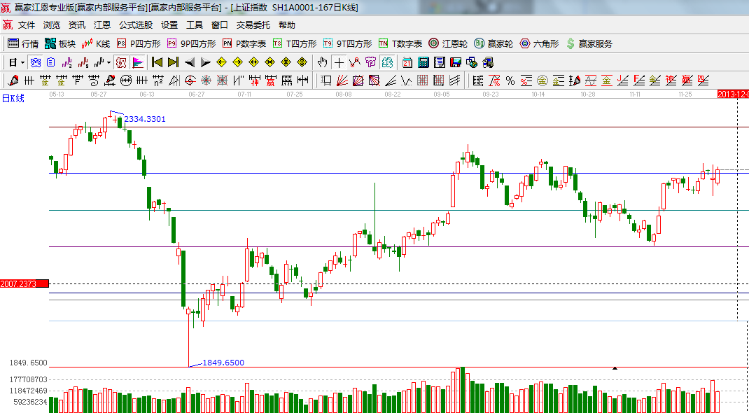 ☆依據(jù)贏家江恩系統(tǒng)波段百分比延伸提示:2444與1849點(diǎn)做黃金分割價(jià)格圖,0.382位置是2217點(diǎn),下方支撐為0.5位置2150,上方拋壓在前期頭部2265附近;