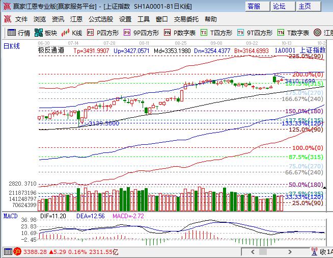 咨詢:13333833889周三大盤(pán)低開(kāi)延續(xù)震蕩小漲收小陽(yáng)線,深市走勢(shì)較弱,創(chuàng)業(yè)板下跌近1%。板塊方面,釀酒、食品和家電等領(lǐng)漲,銀行和保險(xiǎn)兩大權(quán)重起到托起指數(shù)的左右,有色、鋼鐵和券商等較弱;題材方面,僅醫(yī)療、物流和海南本地股局部表現(xiàn),芯片、5G、云計(jì)算、量子通信和石墨烯領(lǐng)跌,個(gè)股跌多漲少成交量同前日持平。技術(shù)方面,短周期進(jìn)入良性的周期修復(fù)階段,15分鐘在極反通道生命線和外軌線空間震蕩后,將逐級(jí)修改較大周期的30、60分鐘,日線方面,江恩百分比315度3371點(diǎn)是盤(pán)中支撐,十九大臨近市場(chǎng)維穩(wěn)氣氛加重,重在個(gè)股操作。倉(cāng)位上中線倉(cāng)保持在4成,短線倉(cāng)3成,3380、3371為日內(nèi)支撐,3398、3401為日內(nèi)壓力。僅供參考,不構(gòu)成任何投資建議。