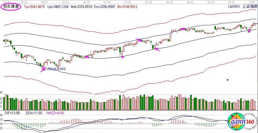 【贏家江恩點評:極反通道工具可幫助用戶解決大盤或個股趨勢判斷、價格買賣點,在日內(nèi)差價高拋低吸方面更能提示其優(yōu)勢?!?/strong>