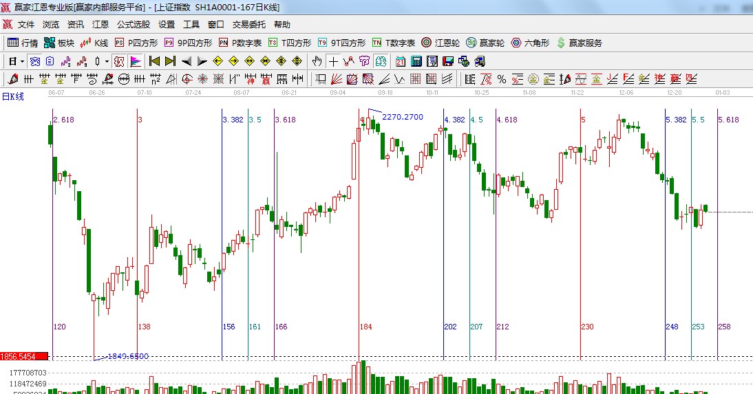 ★依據(jù)贏家江恩系統(tǒng)波段百分比提示:1849點(diǎn)與2444點(diǎn)做分析,135度是2072點(diǎn)、180度是2145附近;