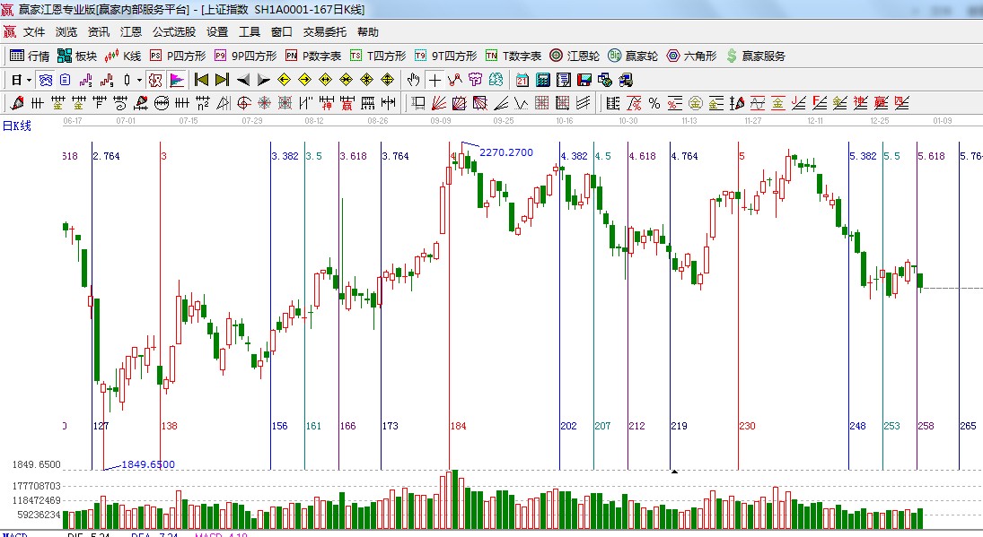 ★依據(jù)贏家江恩系統(tǒng)波段百分比提示:1849點(diǎn)與2444點(diǎn)做分析,135度是2072點(diǎn)、120度是2048附近;
