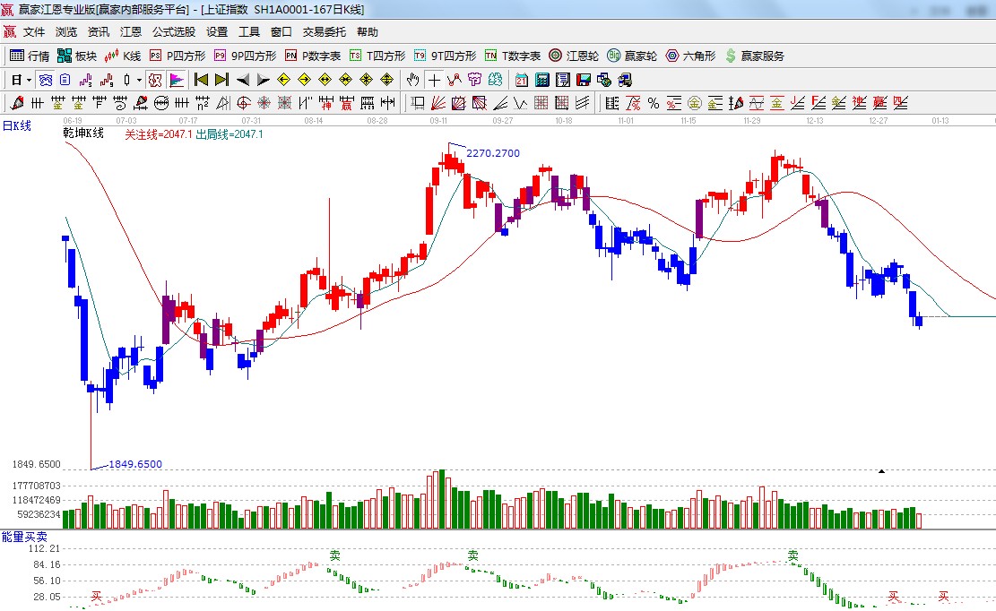 ☆依據(jù)贏家江恩系統(tǒng)能量買(mǎi)賣(mài)提示:多空能量再次轉(zhuǎn)換,觀察市場(chǎng)能量的聚集;