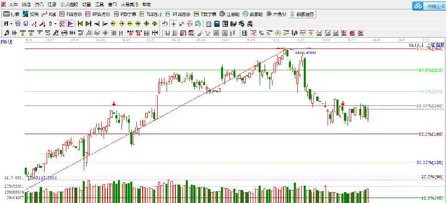 江恩看盤綜述:依據(jù)贏家江恩技術(shù)工具分析得出:周四,滬指探底回升,重新收在60分生命線之上。整體仍在震蕩區(qū)間徘徊,盤面上種種跡象表明,指數(shù)調(diào)整空間已經(jīng)被基本封殺,如伴隨量能的配合有效突破3305點,指數(shù)將結(jié)束調(diào)整迎來反彈。周線時間窗口臨近,耐心觀察,等待確認(rèn)性的轉(zhuǎn)折出現(xiàn),如能有效放量,或?qū)⑨尫胖笖?shù)見底信號。操作上,逢低可考慮分批低吸。