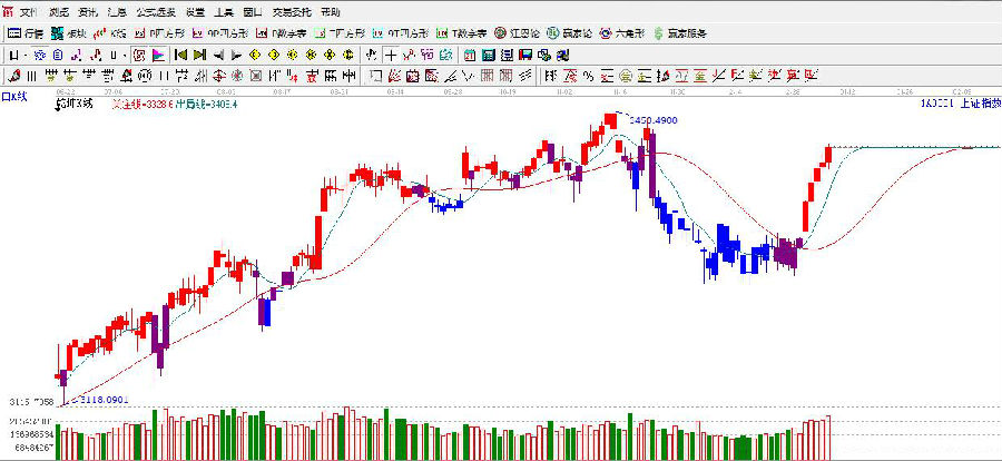 ☆依據(jù)贏家江恩理論系統(tǒng)極反通道提示:滬指超預(yù)期上漲,突破了60分藍(lán)色上軌線,并收復(fù)3400點,3400點之上股價有望繼續(xù)保持強(qiáng)勢。依據(jù)規(guī)則,日線生命線之上,趨勢多頭。