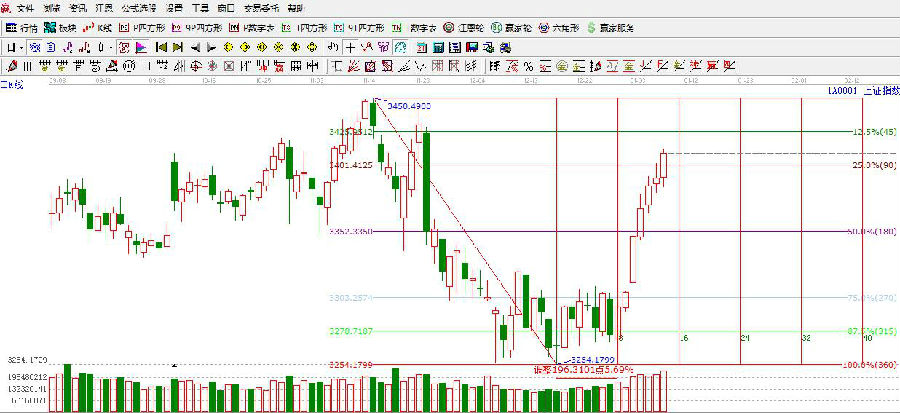 ★依據(jù)贏家江恩理論系統(tǒng)江恩波段百分比提示:滬指超預(yù)期上漲,突破了百分比90度強(qiáng)阻力3401點。3401點轉(zhuǎn)變?yōu)橹危路?80度依舊是3352點附近,上方目標(biāo)阻力在百分比45度3425點附近?! ?/p>
