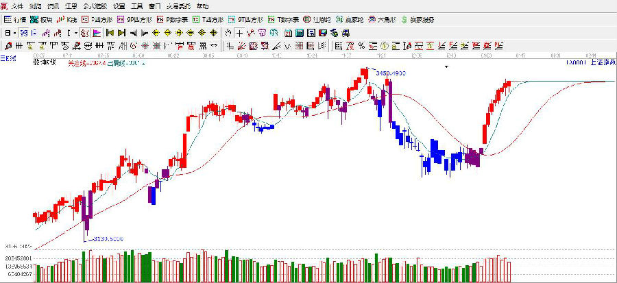 ☆依據(jù)贏家江恩理論系統(tǒng)極反通道提示:周三,滬指在60分藍(lán)色外軌線震蕩整理,外軌線阻力是3430附近,30分生命線支撐3400點(diǎn),日線生命線3350點(diǎn)附近,依據(jù)規(guī)則,日線生命線之上,中期趨勢向上為主。
