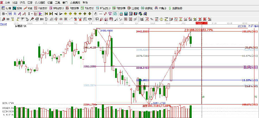 江恩看盤綜述:依據(jù)贏家江恩技術(shù)工具分析得出:大盤在10日窗口后,量縮價(jià)漲。今日指數(shù)如期迎來調(diào)整,最低探至3402點(diǎn)后回升。經(jīng)過11連陽的上攻,這里的回調(diào),空間上不會(huì)太多,接下來繼續(xù)關(guān)注百分比支撐3400點(diǎn),3380點(diǎn)附近。也就是說這里回調(diào)之后,將是一個(gè)比較好的低吸的機(jī)會(huì)。整體上,中線趨勢(shì)看好依舊,短線保持謹(jǐn)慎。本周傾向于低吸,而不宜去追漲。耐心等待指數(shù)回調(diào),可在回調(diào)中關(guān)注年報(bào)業(yè)績(jī)良好的標(biāo)的股的低吸機(jī)會(huì)。