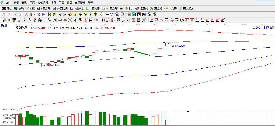 江恩看盤綜述:依據(jù)贏家江恩技術(shù)工具分析得出:周二,滬指在極反通道藍(lán)色線之上強(qiáng)勢(shì)區(qū)域運(yùn)行,在金融地產(chǎn)持續(xù)推動(dòng)下再創(chuàng)新高,其背后邏輯依然是業(yè)績(jī)以及低估值標(biāo)的,元旦節(jié)后的這波反彈確實(shí)大大超出預(yù)期,短期經(jīng)過(guò)連續(xù)的上攻后,需要重點(diǎn)關(guān)注周線極反通道藍(lán)色線3573的位置,中期趨勢(shì)繼續(xù)看好。短期謹(jǐn)防短期過(guò)快上行所迎來(lái)的整理。操作上,繼續(xù)關(guān)注業(yè)績(jī)以及低估值標(biāo)的。另外,短線可適當(dāng)關(guān)注部分低位創(chuàng)藍(lán)籌的機(jī)會(huì)。